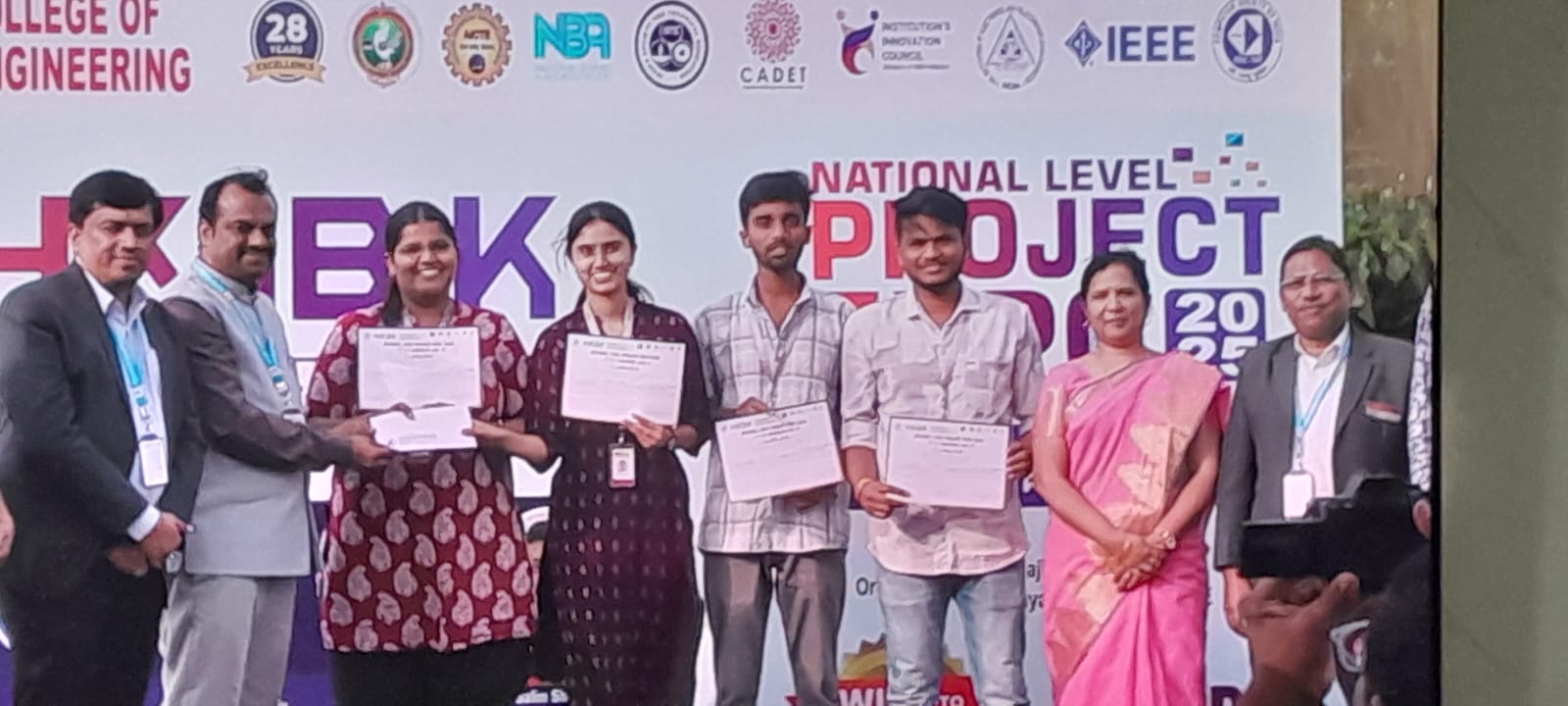 Congratulations to Vaishnav C S, Vikas K, Varun T B, and Vatsala Budur, final‑year students of the Department of Computer Science and Engineering, for winning the Special Prize for their project, “Facesynth – Real‑Time 3D Facial Mapping,” at the National Level Project Expo 2025, held at HKBK College of Engineering on 4–5 December 2025.