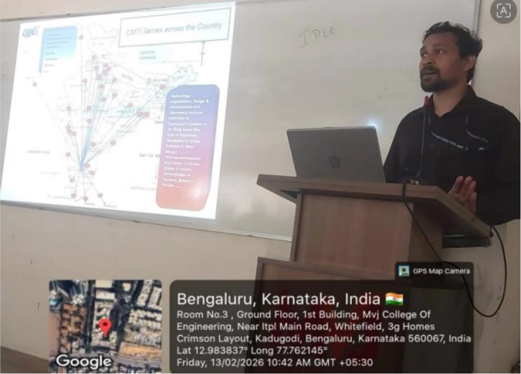The guest lecture on “Recent Advancement Techniques in Additive Manufacturing (AM)” by Mr. Vinod AR, Scientist-D, Central Manufacturing Technology Institute, Bangalore, provided an in-depth overview of the latest trends, innovations, and industrial practices in the field of 3D printing and advanced manufacturing. The session highlighted how additive manufacturing has evolved beyond prototyping to become a crucial technology in high-precision engineering, aerospace, biomedical applications, automotive design, and customised product development.